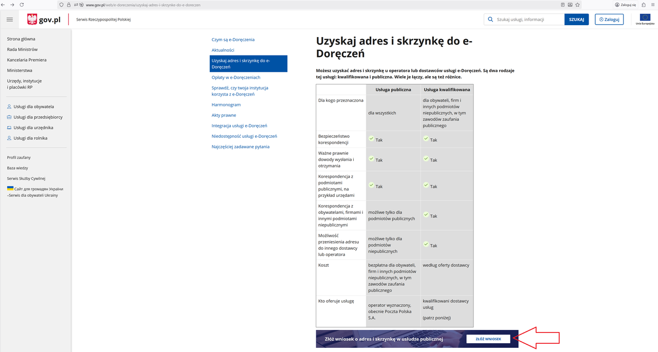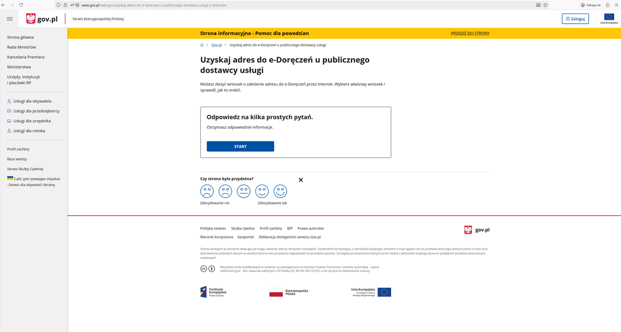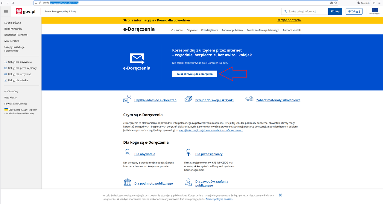 Zwykle do systemu trafimy przez wyszukiwarkę internetową która przekieruje nas na stronę https://www.gov.pl/web/e-doreczenia