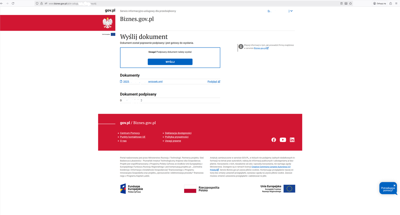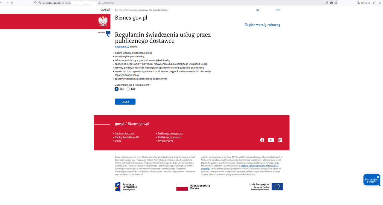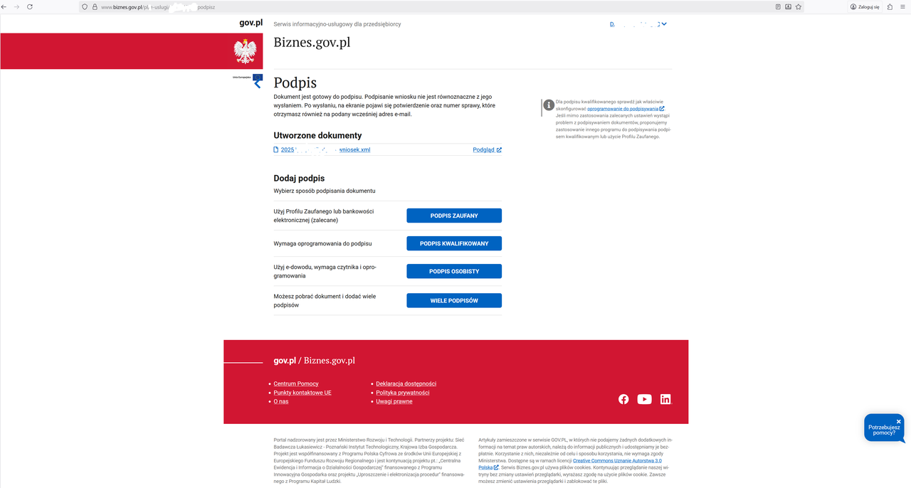 W przypadku firm zarejestrowanych w CEIDG zostaniemy przeniesieni na domenę biznes.gov.pl