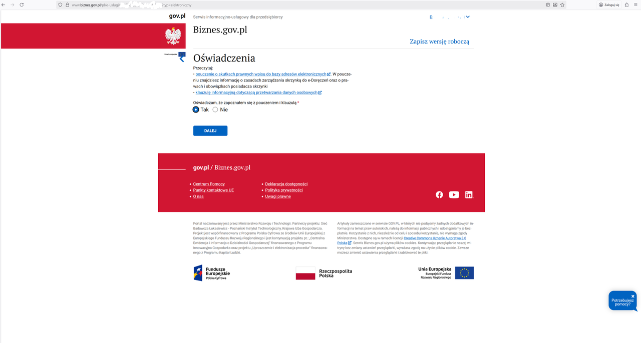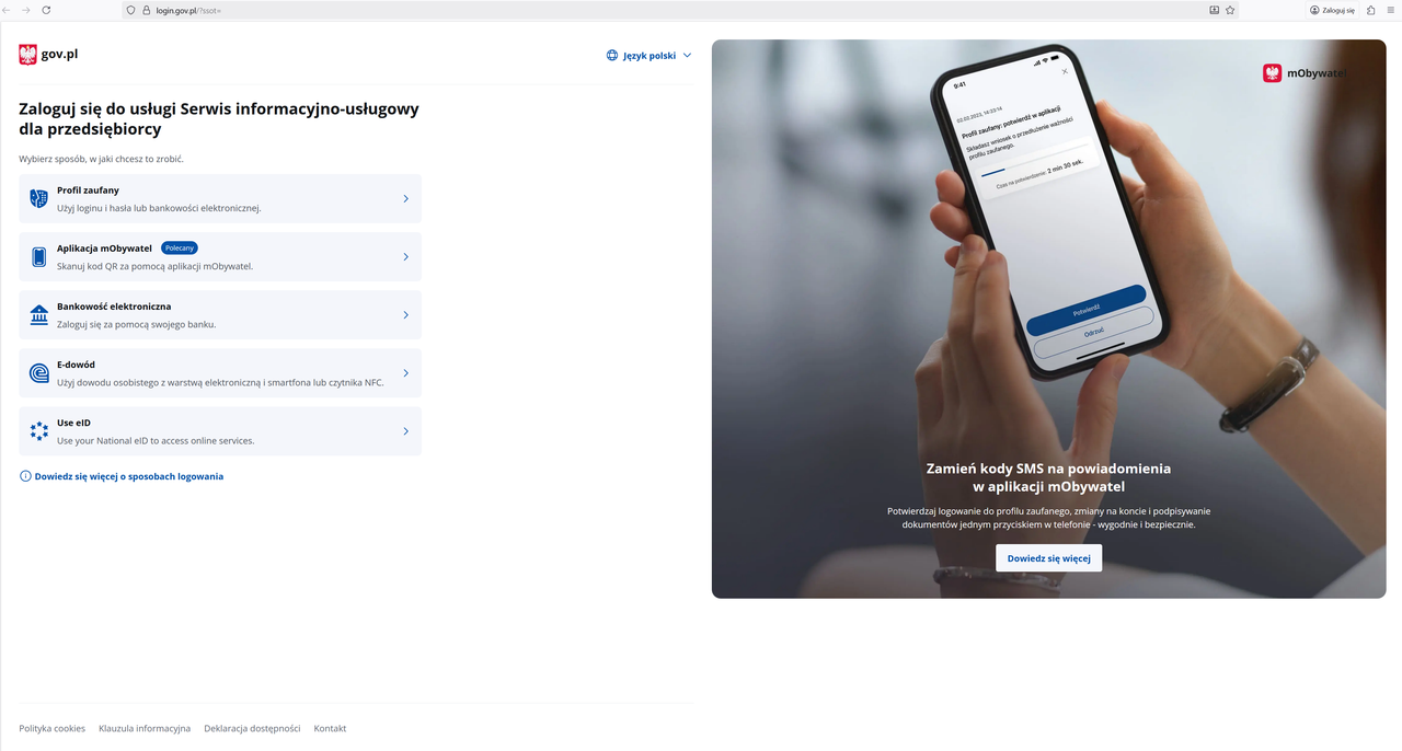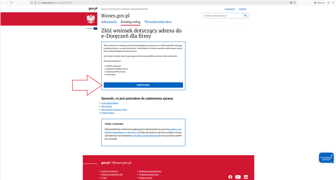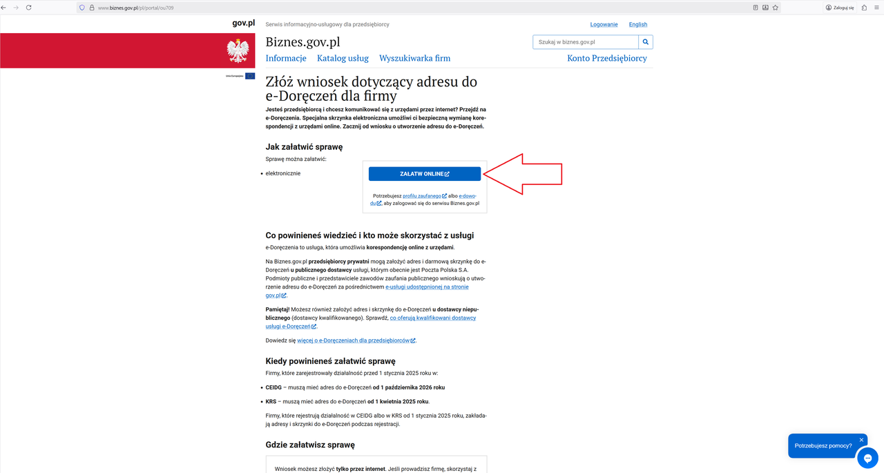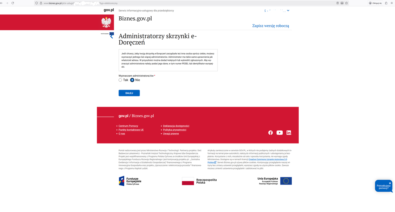 W przypadku firm zarejestrowanych w CEIDG zostaniemy przeniesieni na domenę biznes.gov.pl